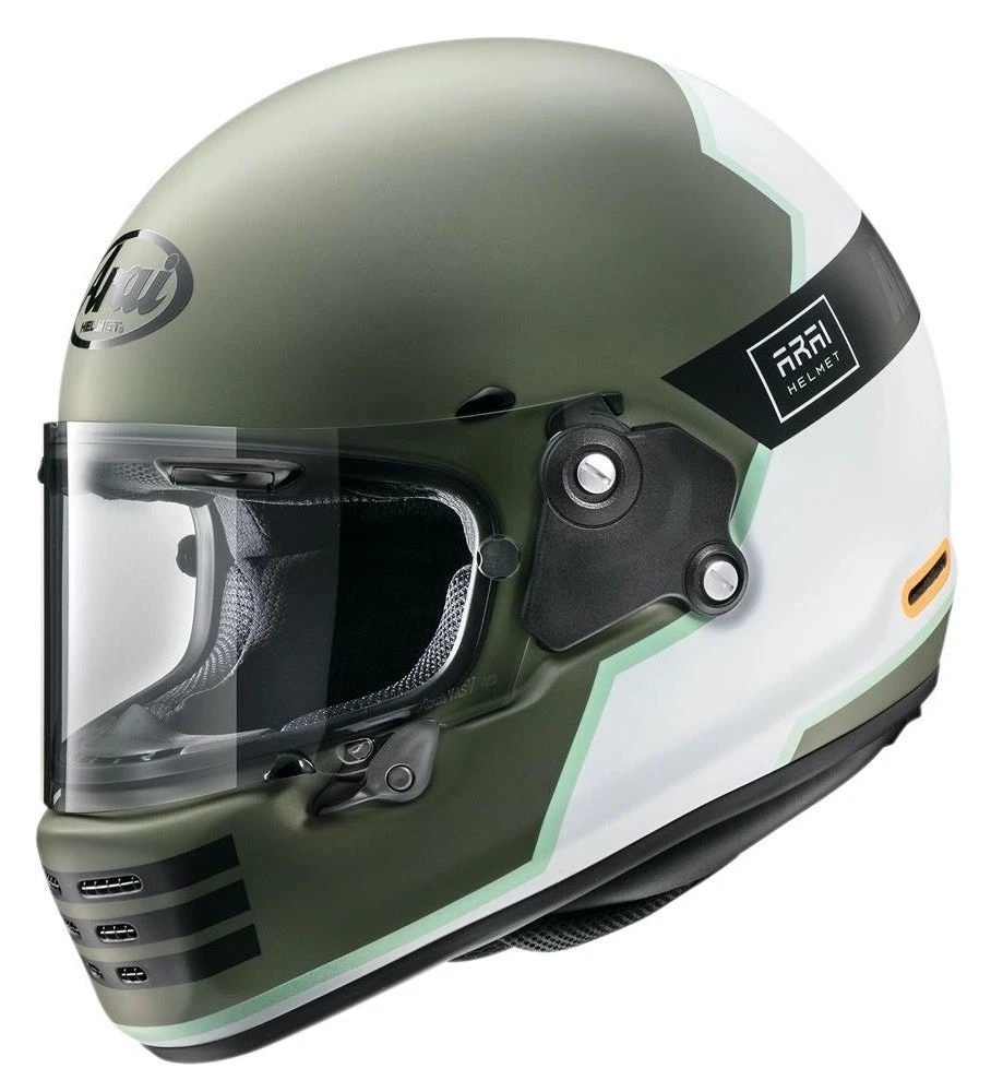 De Arai Concept-X Overland motorhelm combineert iets dat niet veel helmen in het retrosegment lukt: looks mixen met performance. Geheel volgens de designfilosofie zoals alleen Arai die naleeft. Het uiterlijk uit de jaren ’80 doet je verbazen over het draagcomfort voor een goede dag cruisen. Het standaard heldere vizier is uitgevoerd met de kenmerkende ‘Brow vents’ en is uitgevoerd met een MaxVision Pinlock. Onderscheid jezelf op j e naked, caféracer of gewoon als je fan bent van de eighties