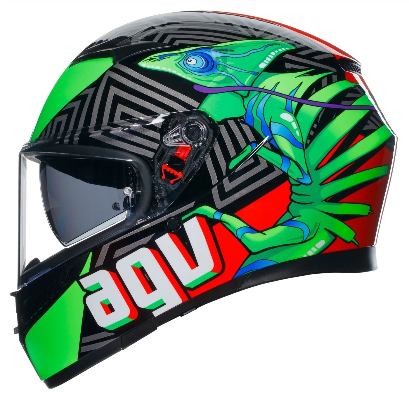 De AGV K3 Kamaleon motorhelm is de allround tour integraalhelm voor straatgebruik van de Italiaanse helmfabrikant waarbij sportiviteit in het DNA ingebakken zit. De K3 is volledig herzien ten opzichte van zijn voorganger, de populaire K3 SV. Om te beginnen bij de helmschaal die volledig opnieuw gevormd is om bij 130km/u maximale stabiliteit te realiseren. Tevens is de K3 voortaan ECE 22.06 gecertificeerd.