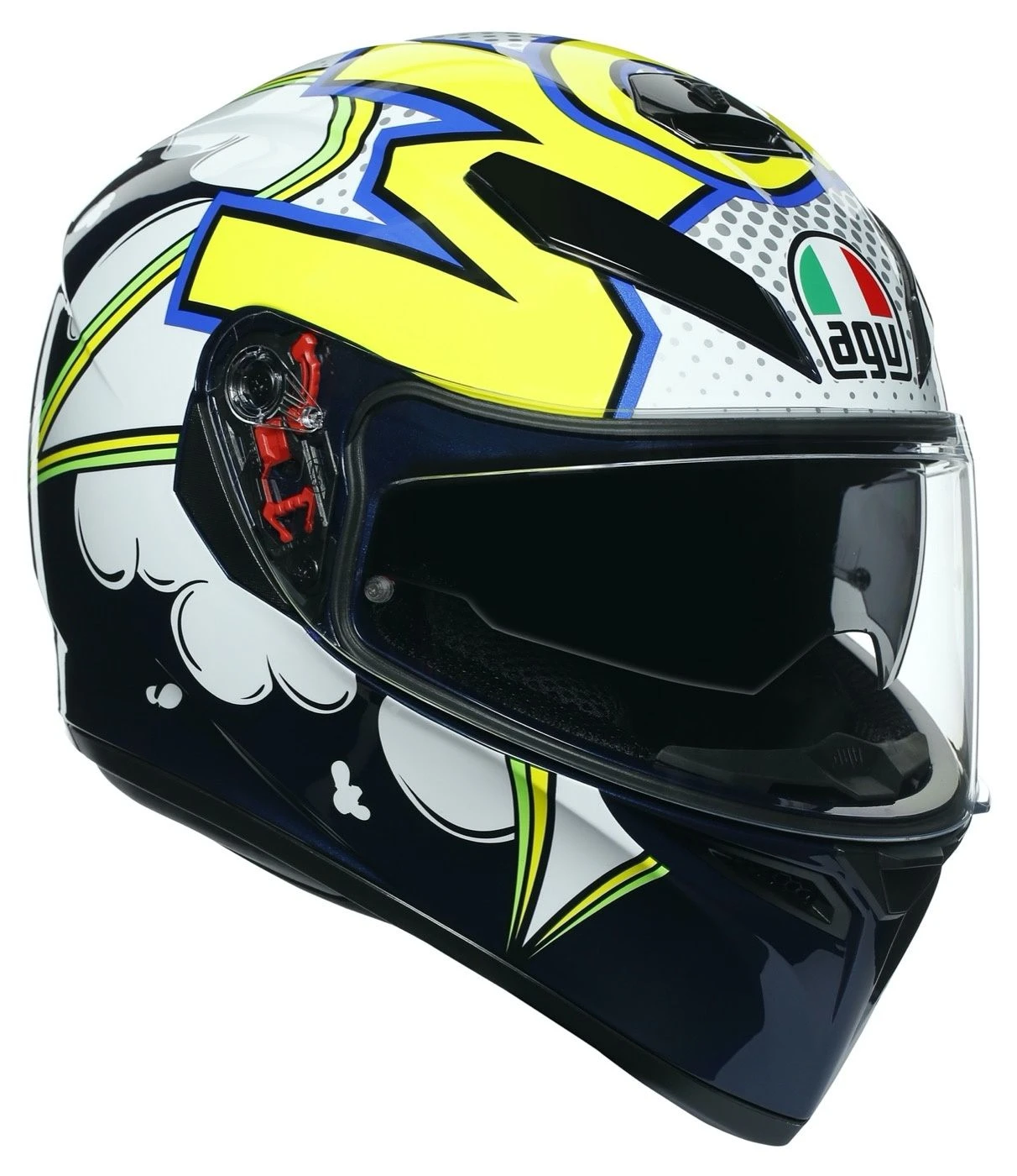 De AGV K3 SV Bubble is al jaren een erg gewaardeerde integraalhelm van Italiaanse makelij. Mede door de gunstige prijsstelling, de sportieve vormgeving en het geïntegreerde zonnevizier. De krommende nekrand verzorgt deze sportieve looks, al dan niet met opvallende graphics. Bovendien zorgt die ervoor dat leed aan de schouderbladen wordt vermeden bij een onverhoopte crash. Vanaf nu is de K-3 SV voorzien van een Pinlock 70 MaxVision lens, die voor helder en een breed blikveld zorgt. Voorzien van een uitneembaar helminterieur en microbuckle sluiting. Geschikt voor allround gebruik en uiterst betaalbaar voor de beginnende en prijsbewuste motorrijder.