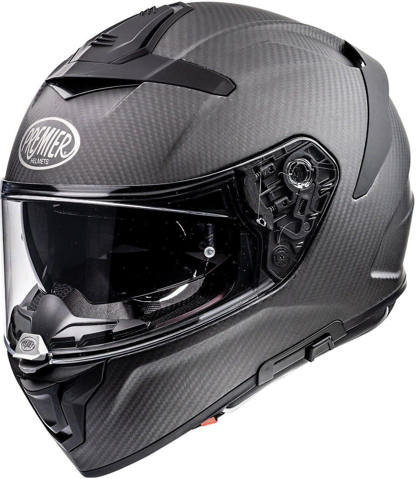 De Devil CARBON BM is de nieuwe carbon integraalhelm uit de 2020 collectie van Premier. Perfect geschikt voor de sportieve rijders met bijvoorbeeld een supersport of naked bike. Met zijn prima prijs-kwaliteit verhouding is er geen moeite bespaard bij de ontwikkeling. De helm is door zijn strakke lijnen zeer aorodynamisch en daardoor zowat geruisloos. De helm beschikt over een hoogwaardige mix van carbon, dyneema en glasvezel buitenschaal en een EPS binnenschaal die samen zorgen voor impactbescherming wanneer nodig. De binnenvoering is anti allergeen en is volledig uitneembaar en wasbaar. Het kras vaste vizier met pinlock en het interne zonnevisier zorgen voor goed zicht bij alle weersomstandigheden.