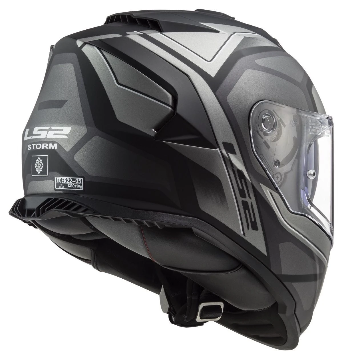 De LS2 FF800 Storm II Faster motorhelm is een aantrekkelijke integraalhelm voor uiteenlopende type motorrijders. De KPA thermoplastic helmschaal die in twee maten komt, heeft een mooi lijnenspel. Bovendien voldoet de FF800 Storm II Faster aan de strengere ECE 22.06 norm. Verder is die voorzien van de meeste eigenschappen van een touring helm in een hoger prijssegment: een geïntegreerd zonnevizier, comfortabel en uitneembaar helminterieur en groot helder vizier met Pinlock voorbereiding. Een Pinlock anticondens lens is optioneel verkrijgbaar.