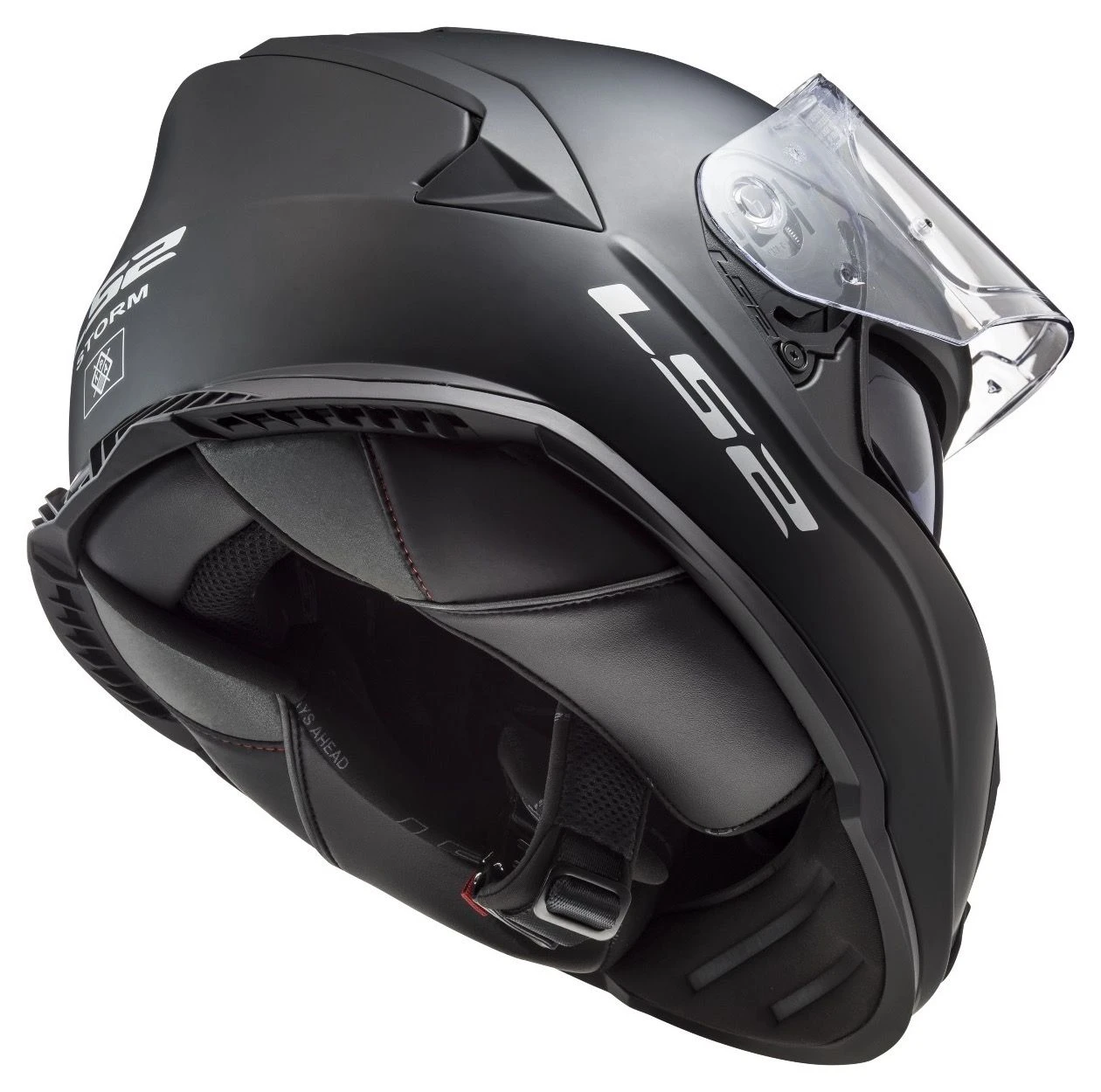 De LS2 FF800 Storm II motorhelm is een aantrekkelijke integraalhelm voor uiteenlopende type motorrijders. De KPA thermoplastic helmschaal die in twee maten komt, heeft een mooi lijnenspel. Bovendien voldoet de FF800 Storm II aan de strengere ECE 22.06 norm. Verder is die voorzien van de meeste eigenschappen van een touring helm in een hoger prijssegment: een geïntegreerd zonnevizier, comfortabel en uitneembaar helminterieur en groot helder vizier met Pinlock voorbereiding. Een Pinlock anticondens lens is optioneel verkrijgbaar.