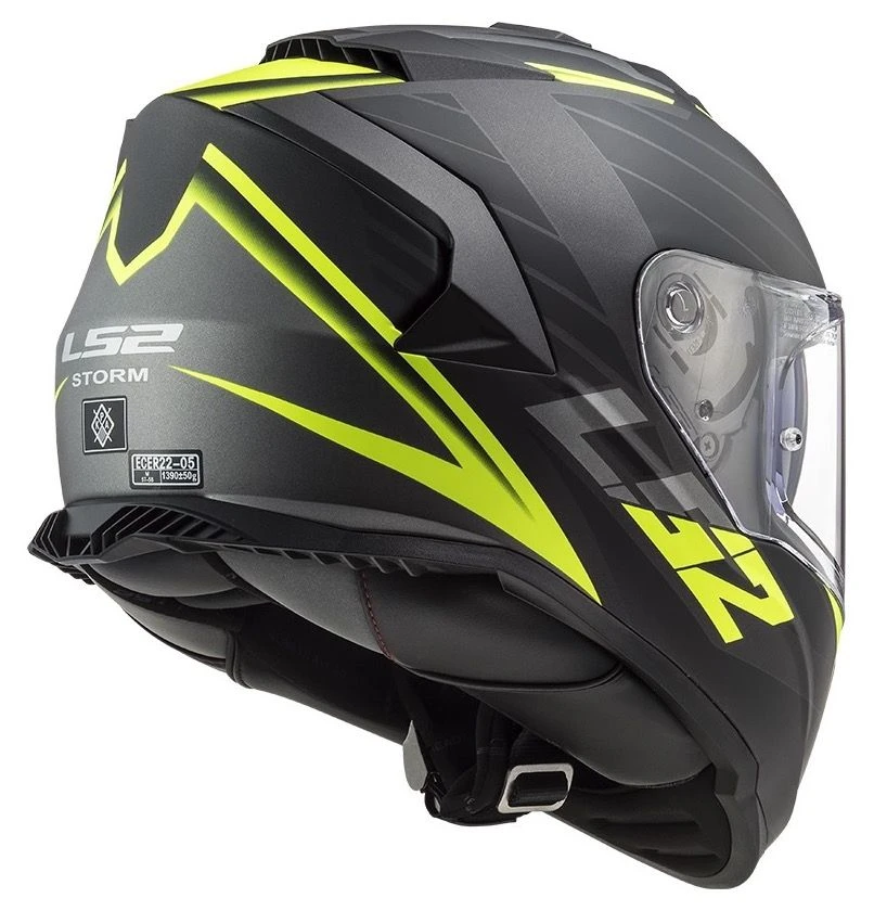 Een middelzware polycarbonaat helmschaal, uitgevoerd in twee schaalmaten gegoten in de vorm van een serieuze sport-tour helm. Oftewel de LS2 FF800. Het zonnevizier, drie afsluitbare ventilatiepoorten, quick-realease sluiting en pinlock voorbereiding maken de FF800 een goede optie voor de motorrijder met een budget of een comfortabele, zelfs luxe, passagiershelm. De hypo-allergene voering biedt naast comfort ook een afwezigheid van dubieuze luchtjes en de mogelijkheid tot het dragen van een bril. Naast deze flitsende Nerve uitvoering is er ook de mogelijkheid te kiezen voor één van de single mono versies.